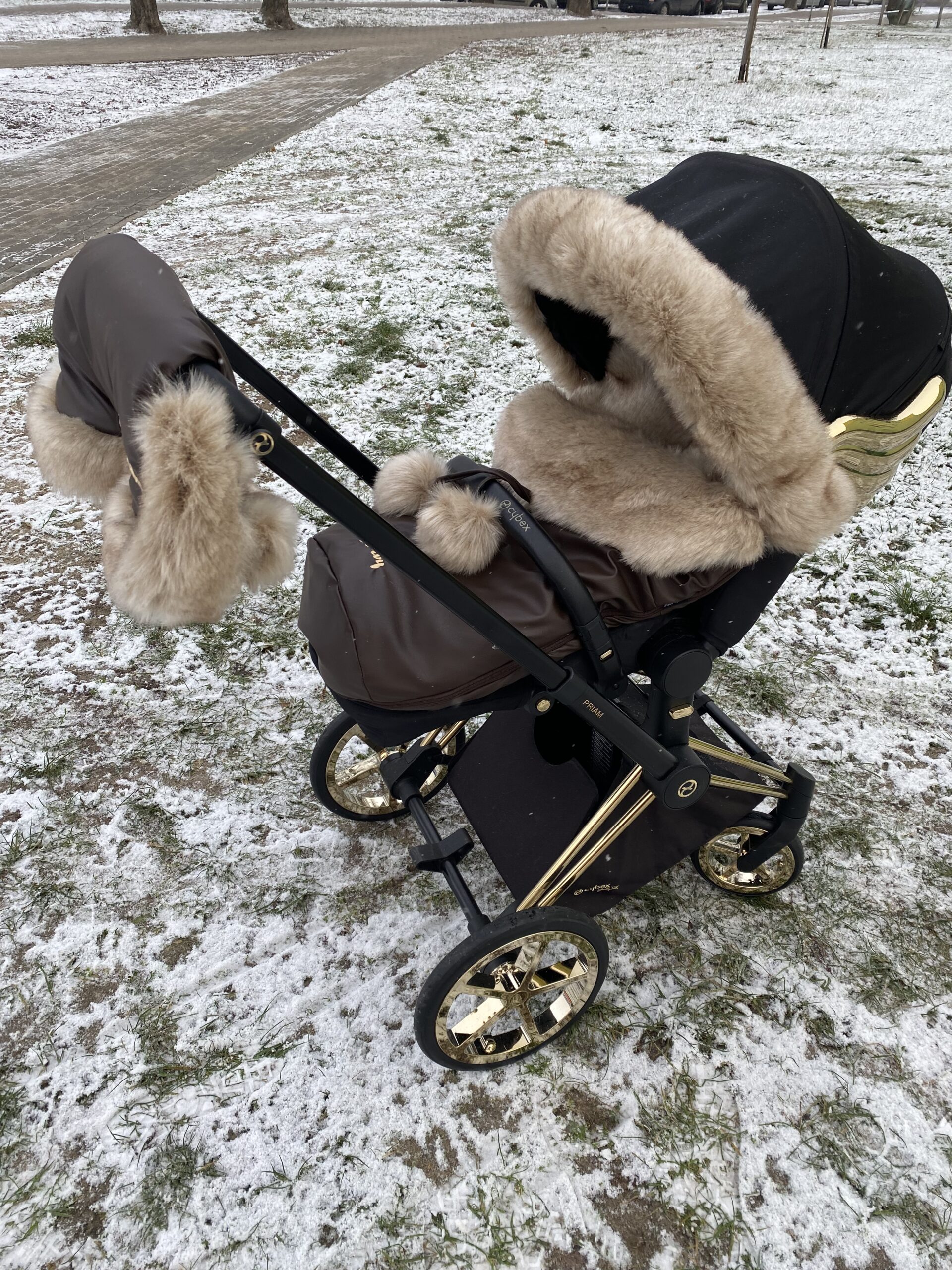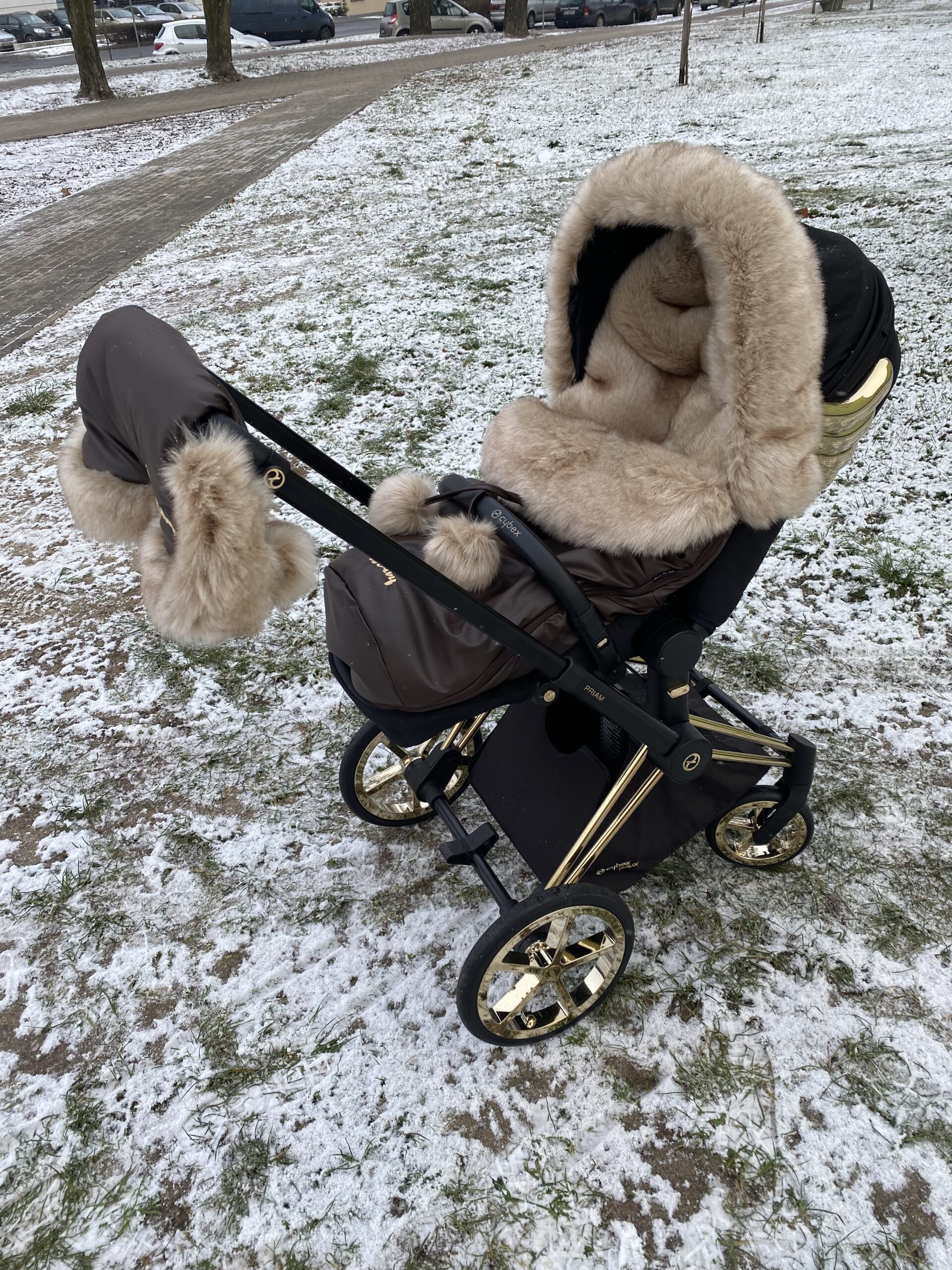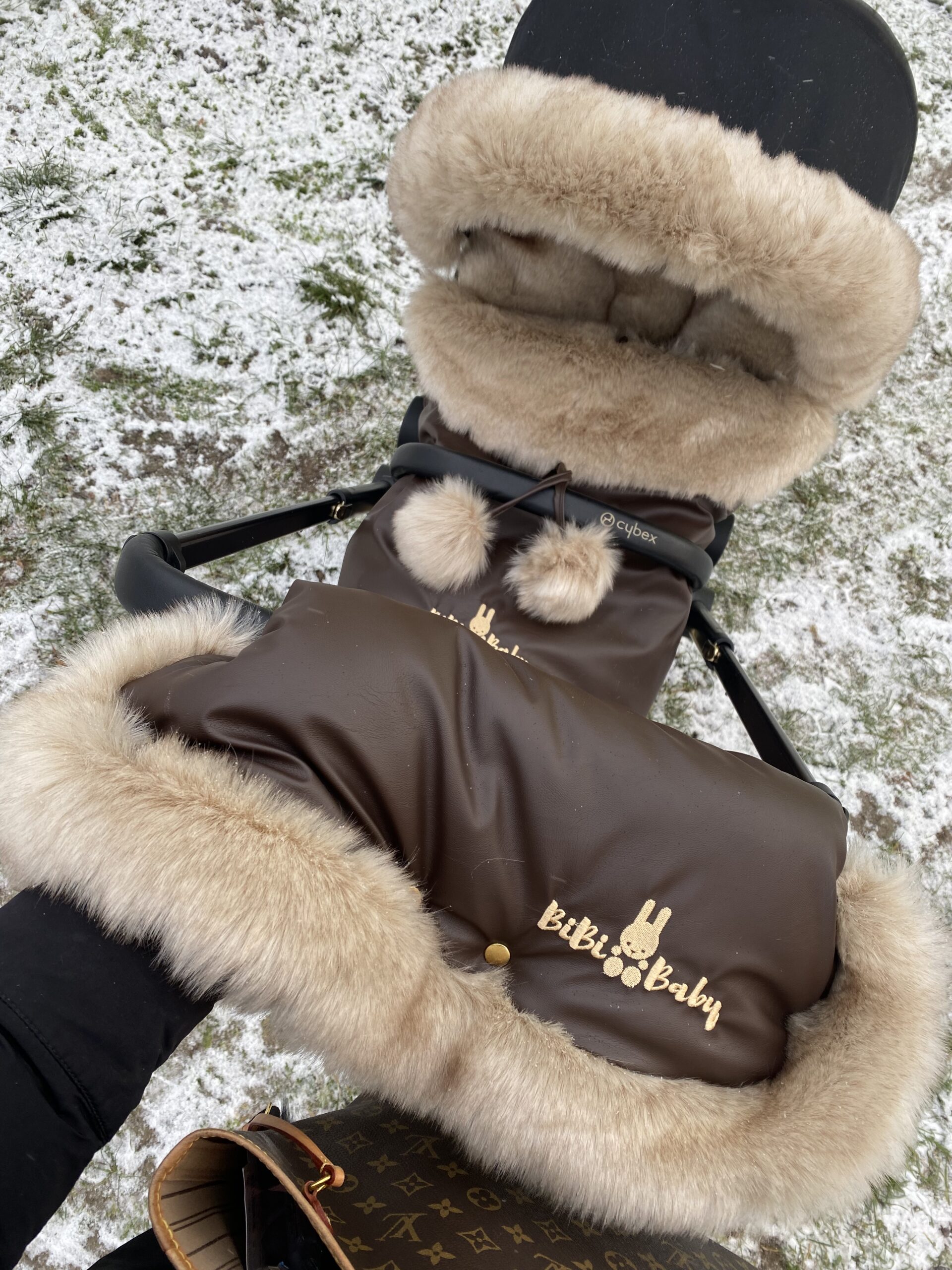Winter Set For Stroller, Muff And Fur Collar For The Canopy – Brown And Medium Long Fur- Very Luxurious Fur – ,,BOMBA DELUXE” FUR