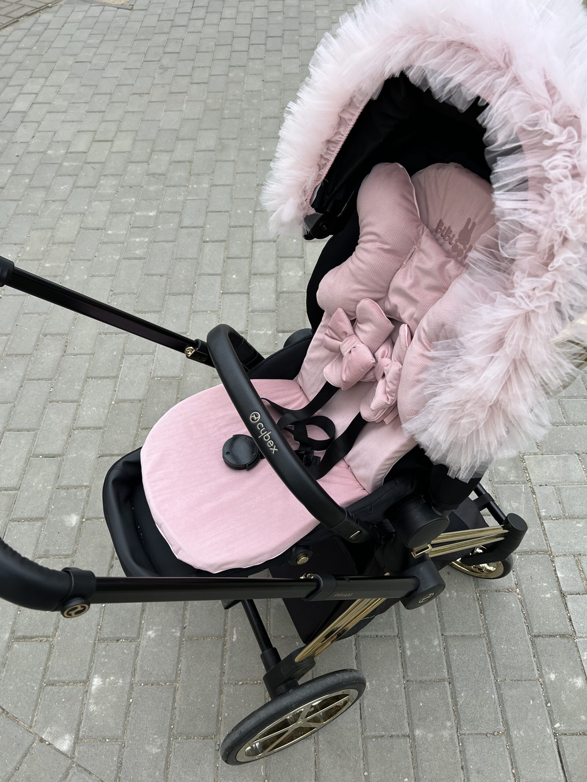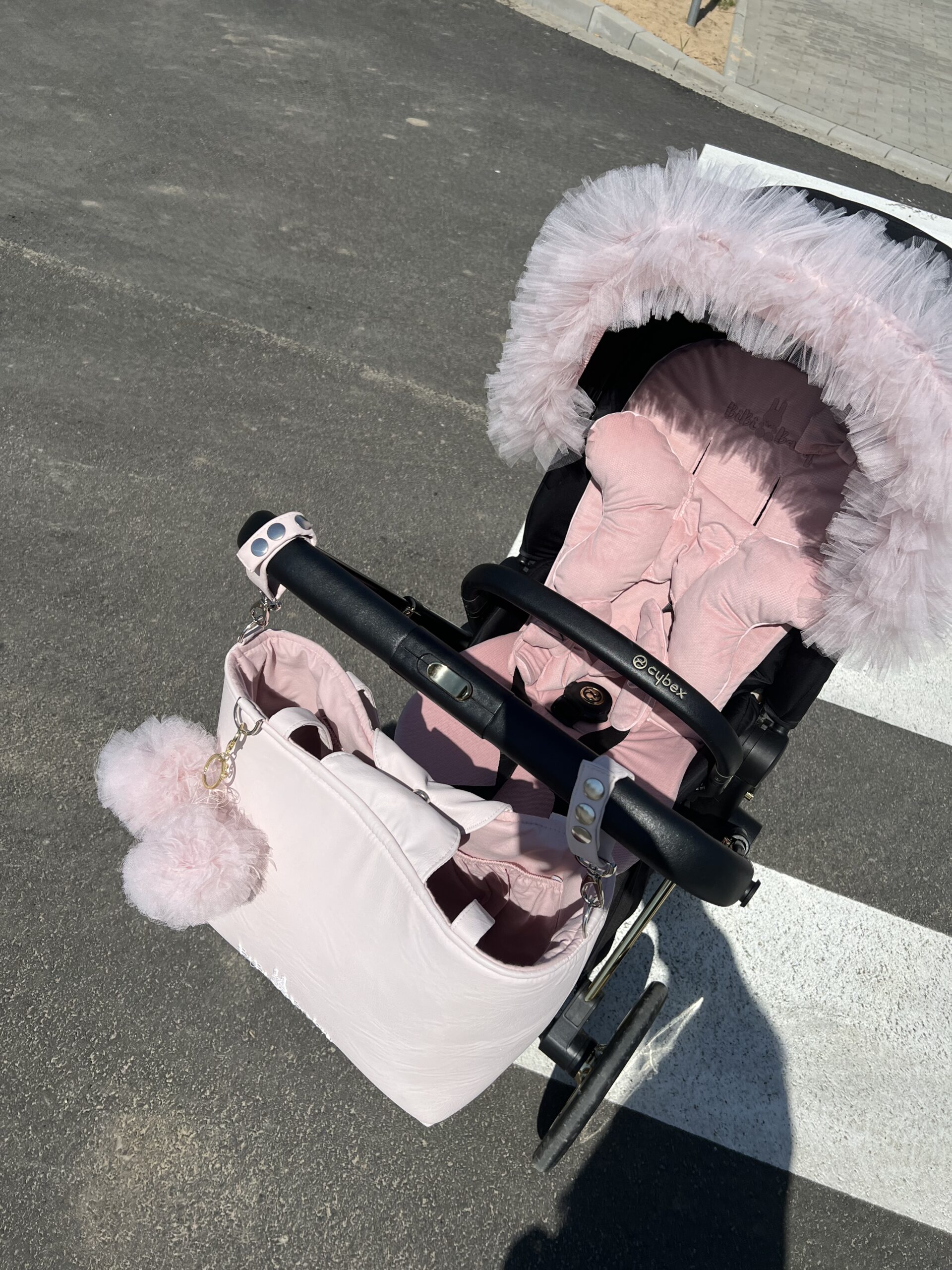 Przedstawiamy przepiękny zestaw do wózka dziecięcego – zestaw BON BON kolor różowy z kokardami