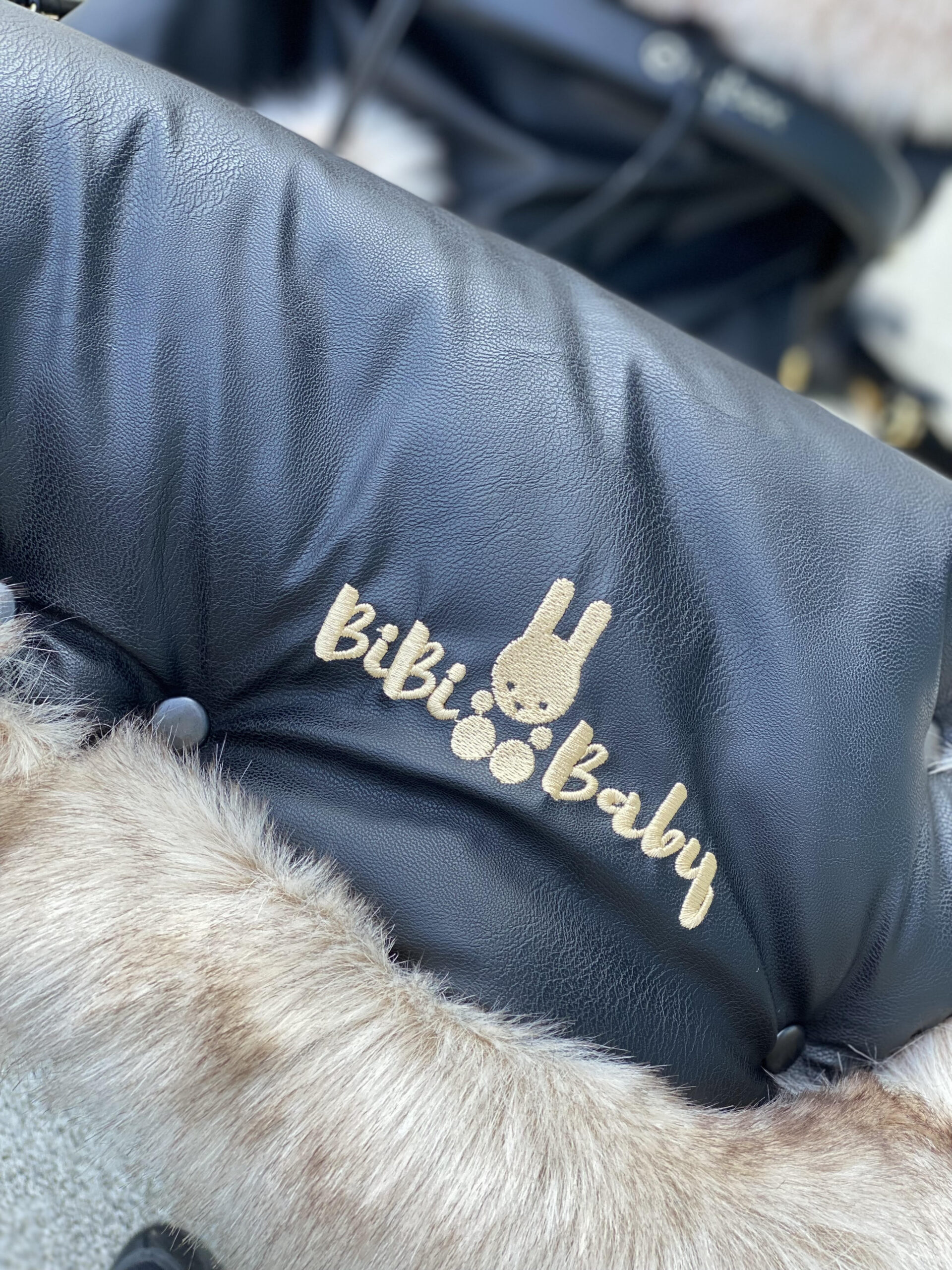 Wykonana z ekoskórki, którą można delikatnie przemyć wilgotną szmatką z płynem, w razie zabrudzeń. Wnętrze mufki uszyte jest z mięciutkiego i przyjemnego minky. Przechodzimy głównie na tkaninę minky bez wzorów.