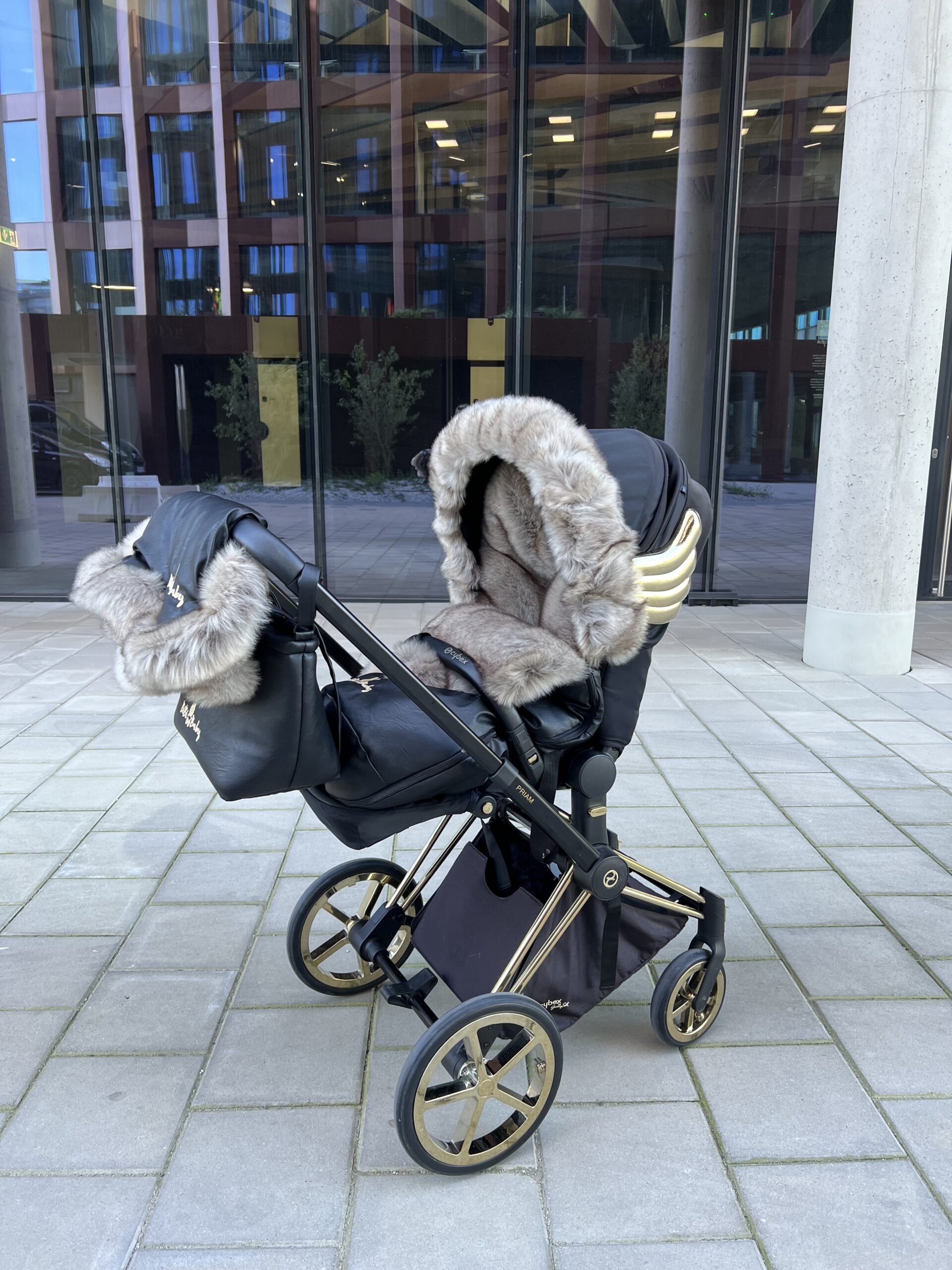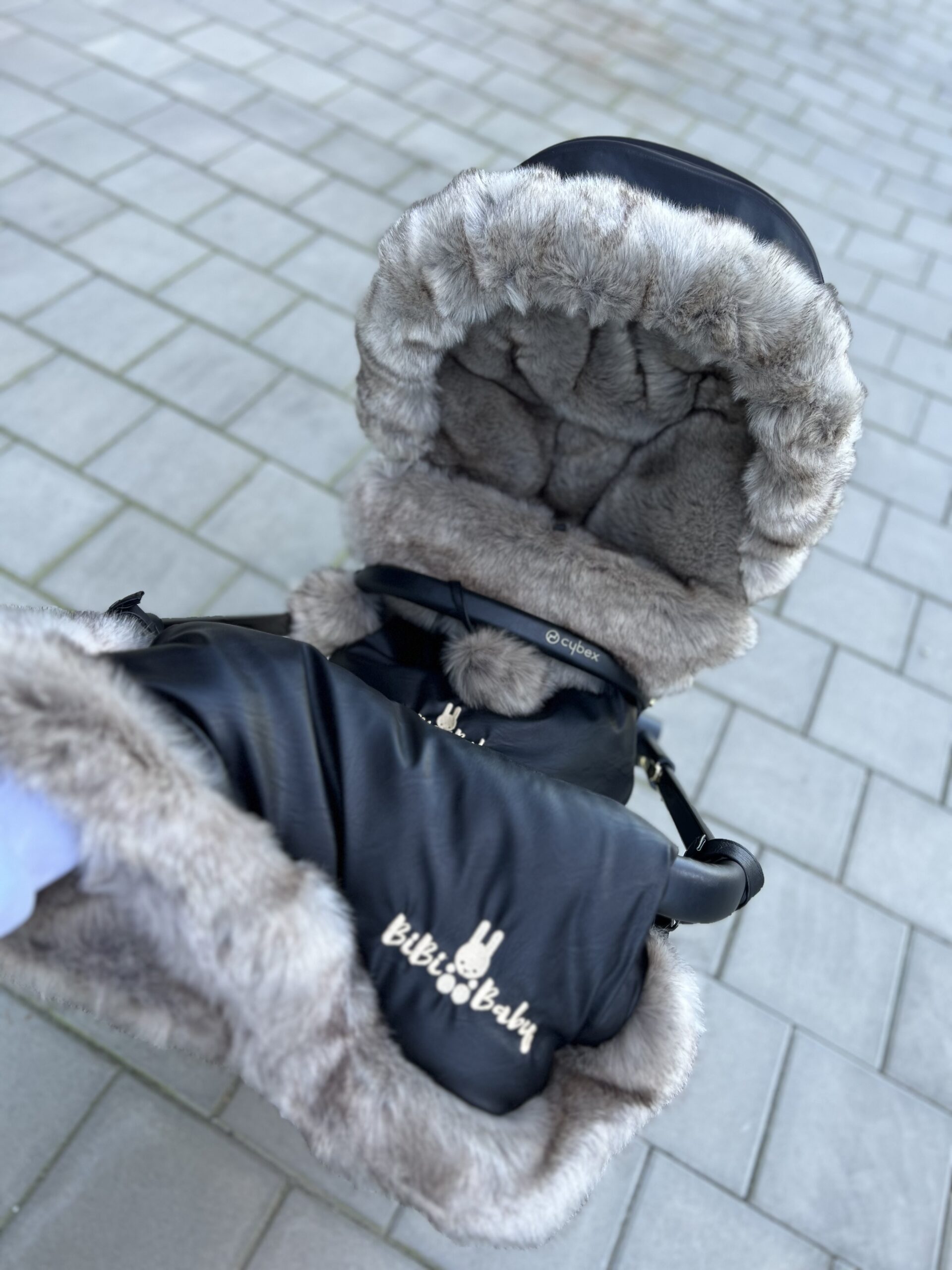 Śpiworek wykonany jest z ekoskóry, tkaniny wodoodpornej, górna część śpiworka to sztuczne futerko bardzo wysokiej jakości, środek śpiworka ma miękką tkaninę oraz pod bucikami ma tkaninę wodoodporną, które chroni przed brudem z bucików. Wypełnienie śpiworka to gruba ocieplina, która zapewnia idealne ciepło podczas spacerów zaczynając od wczesnej jesieni, przez zimę do wiosny.