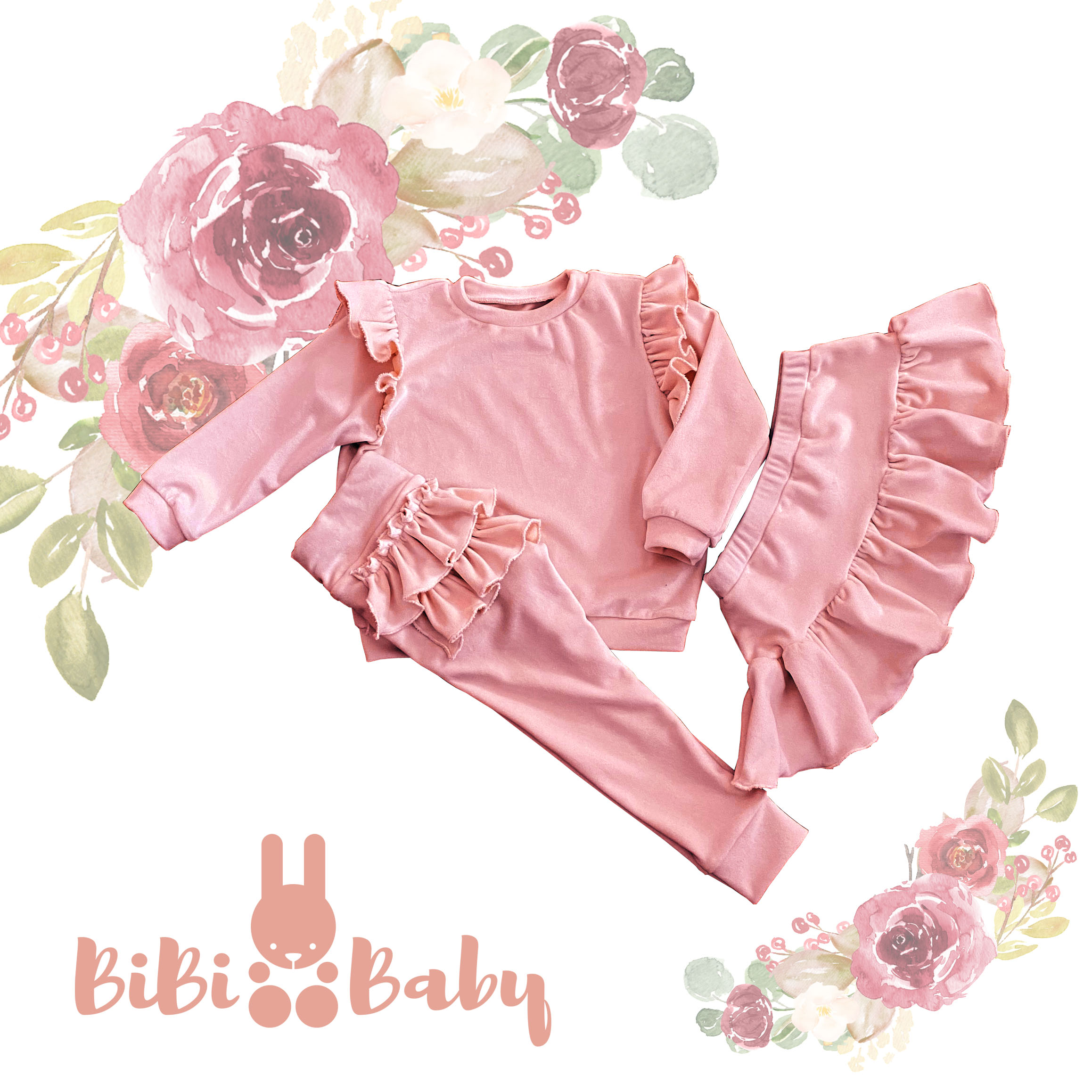 Zestaw zawiera bluzę, spodenki oraz spódniczkę.